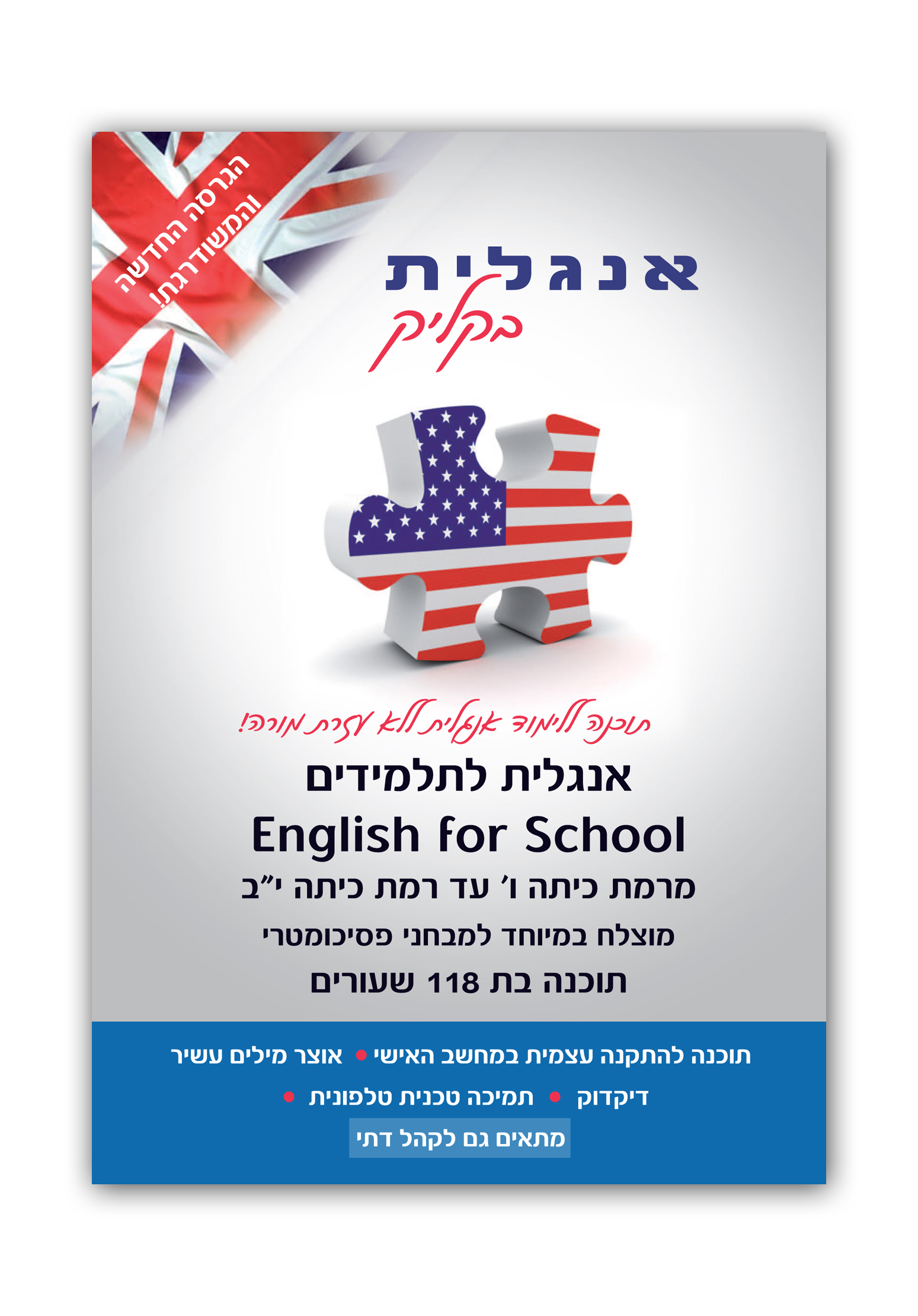 אנגלית לתלמידים היא תוכנת מחשב ללימוד אוצר מלים באנגלית הבנויה במיוחד על מנת לענות על צורכיהם של תלמידים בחטיבת הביניים, תיכון ואוניברסיטה. התוכנה קיימת בשלל גרסאות, עברית רוסית וערבית. מחיר מבצע לגרסה עם דיסק 189 ש"ח. מכיל אוצר של 4,000 מילים. דיקדוק והיגוי נכון מרמת כיתה ו' עד רמת כיתה י"ב(מוצלח במיוחד למבחני פסיכומטרי). |